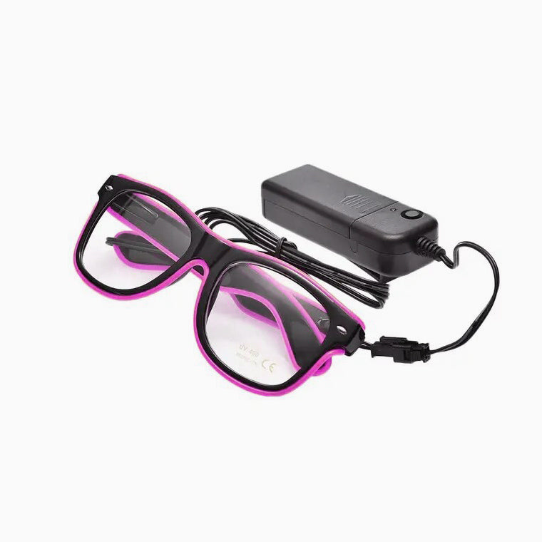 Lila LED-Brille mit Batterien. lDie leuchtenden LED-Brillen können Sie bei verschiedenen Anlässen attraktiver und cooler machen. Universalgröße.