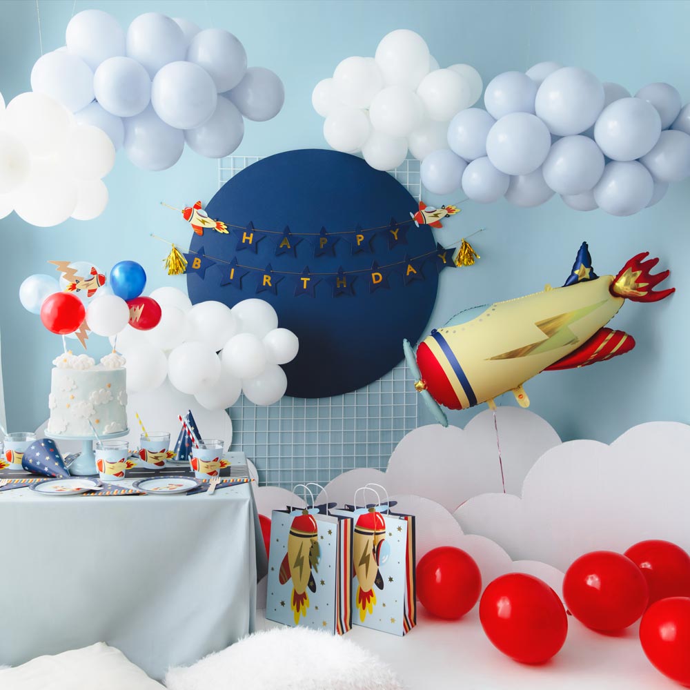 Bereit für ein Luftabenteuer? ✈️ Wenn Ihr Kleines sich jedes Mal wundert, wenn ein Flugzeug durch den Himmel fliegt, gehört diese Partykollektion Ihnen! Viele Kinder blicken mit leuchtenden Augen in den Himmel, wenn sie das Dröhnen eines Flugzeugs hören, und träumen von Höhen und fernen Horizonten. Flugzeuge sind nicht nur Flugmaschinen; Sie sind Symbole für große Hoffnungen, aufregende Abenteuer und endlosen Spaß. Machen Sie Ihren Kleinen mit unserer Sonderkollektion zum Kapitän seines eigenen Flugziels. Dekorieren Sie mit Luftballons, die Flugzeuge und Wolken nachahmen, themenbezogenem Geschirr oder Postern, die die Spannung von Flughäfen nachbilden. Jedes Detail ist darauf ausgelegt, die Fantasie anzuregen und die Feier auf ein neues Niveau zu heben. Bereiten Sie Ihre Flügel des Spaßes vor, es ist Zeit, auf dieser Party hoch hinauszufliegen! 🎉🛫
