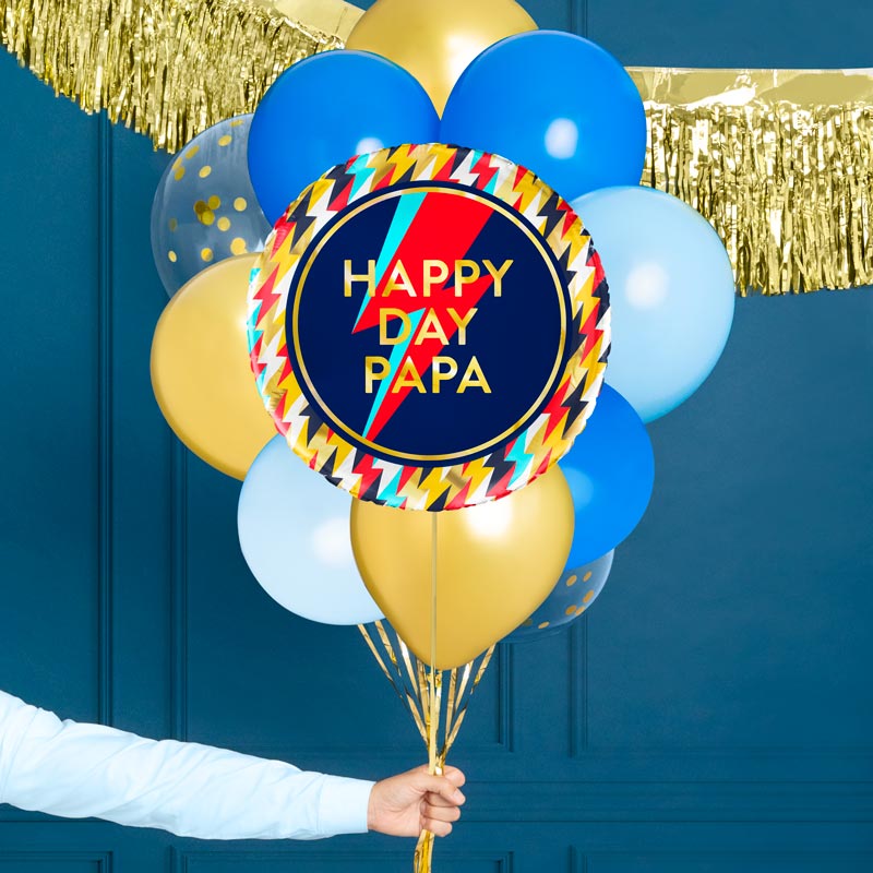 Globo Fail "Happy Day Papa" with ray design and phrase "Happy Day Papa".