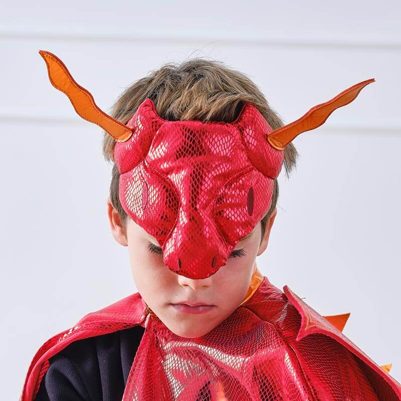 Made of bright red scales and with orange dragon horns, this red dragon mask will make you look fierce and powerful in any imaginary adventure. ✨