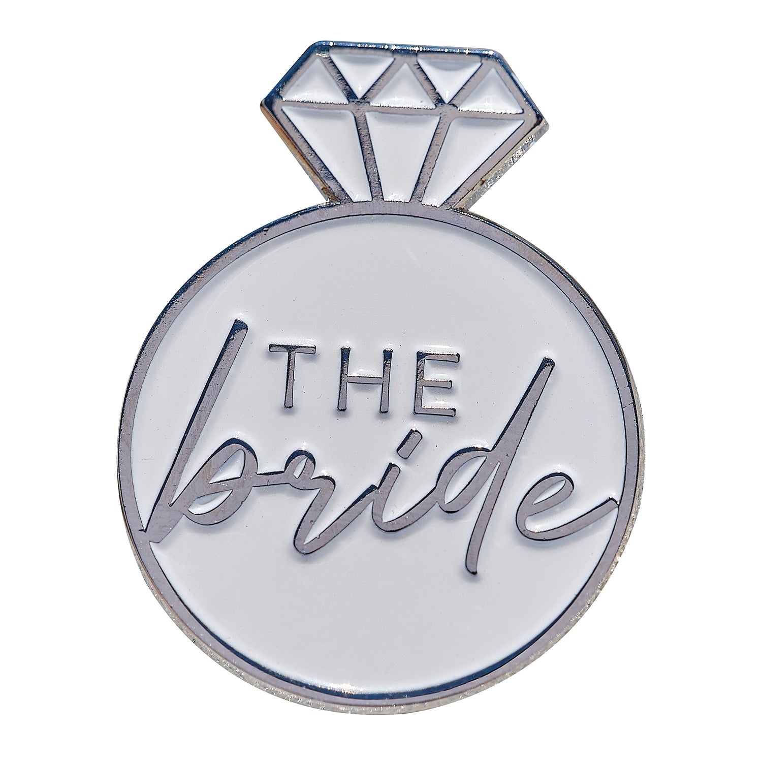 Voulez-vous que la mariée soit le centre d'attention, plus si possible? Cette broche "The Bride" en blanc et en argent sera le complément idéal pour pouvoir se montrer dans cette fête amusante.