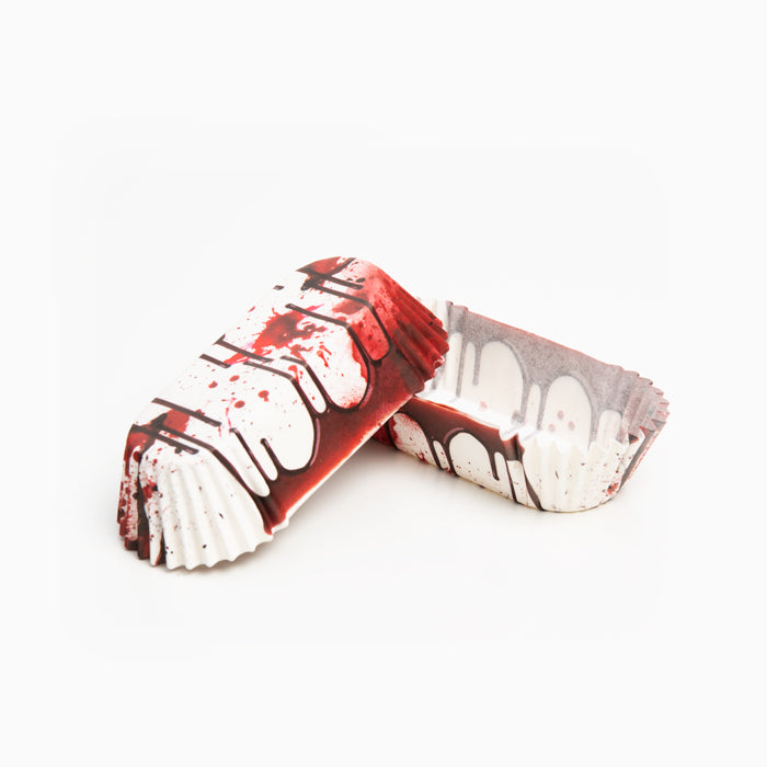 Pack de 50 moules allongés design sang rouge et blanc. Idéal pour la pâtisserie, le four et le micro-ondes. Parfait pour les cupcakes, muffins et muffins ou pour servir des desserts et des apéritifs.