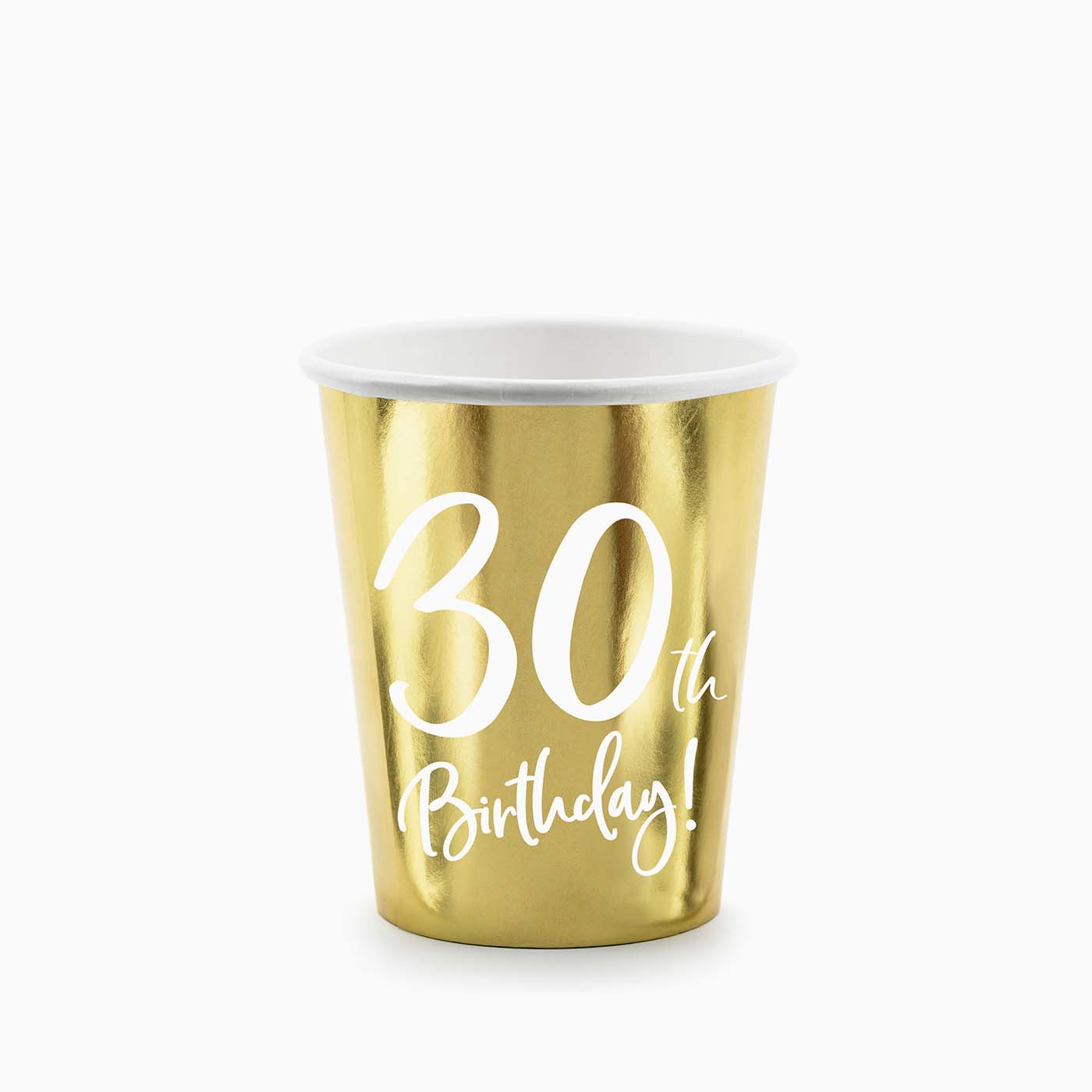 Paquet de 6 verres Carton doré 30ème anniversaire 220 cc pour fêter l'anniversaire de quelqu'un.