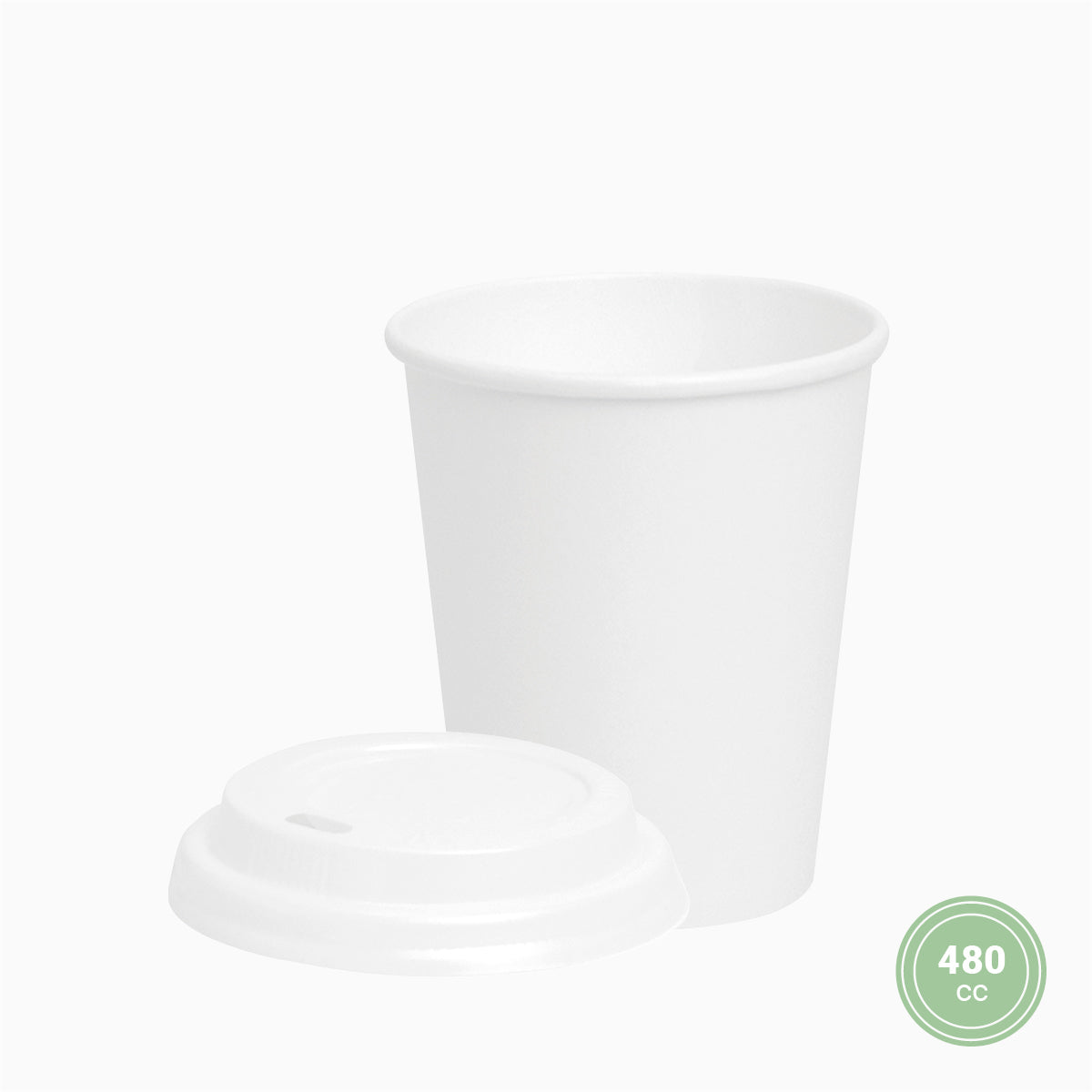 Gobelet en carton blanc de 480 cc avec couvercle.