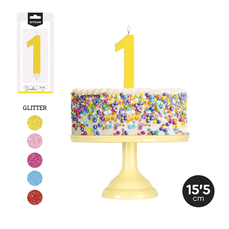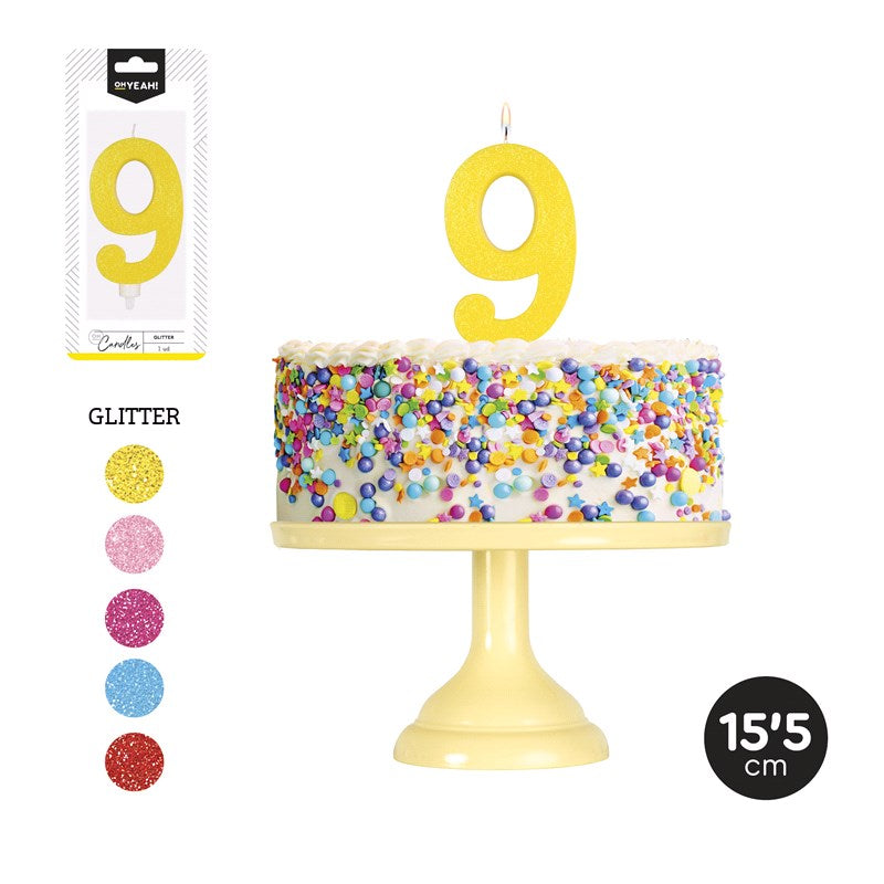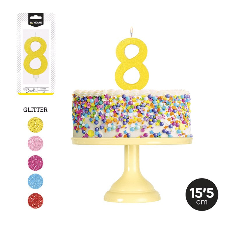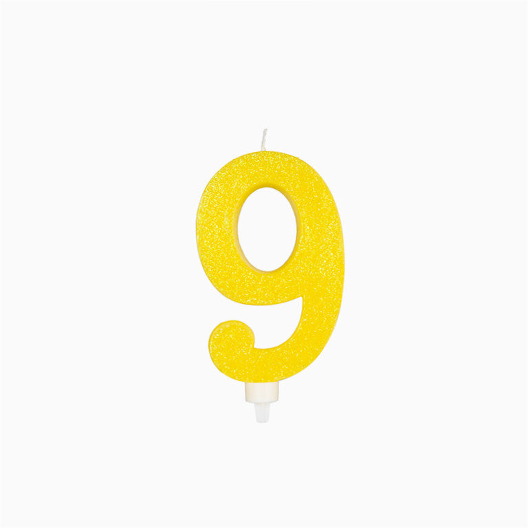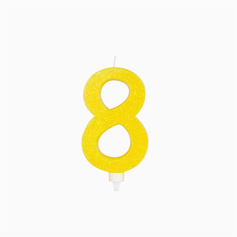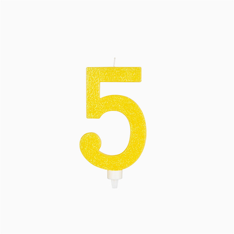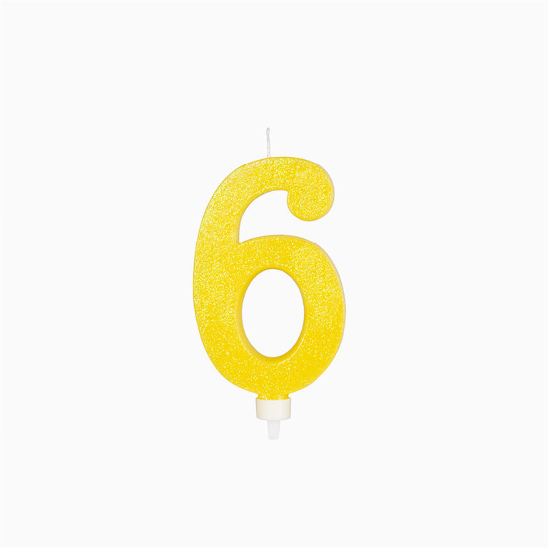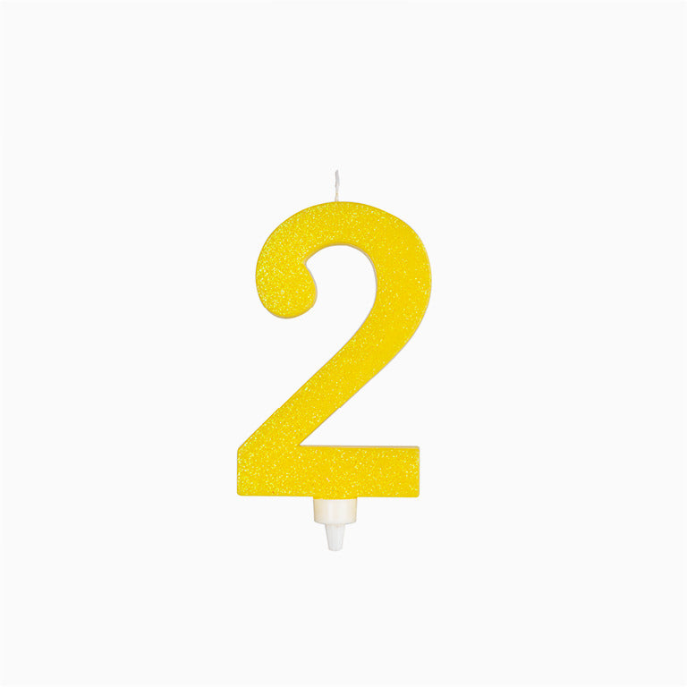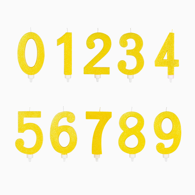 Comprend 1 unité de grande bougie en forme de chiffre, avec un élégant design jaune pailleté qui ajoute une touche spéciale à vos célébrations.