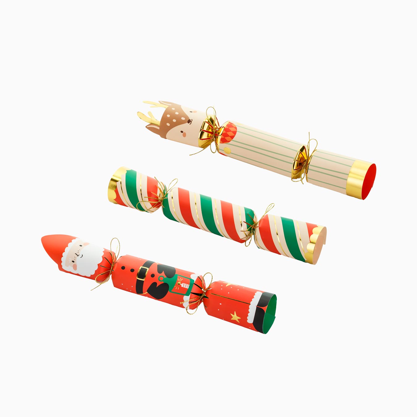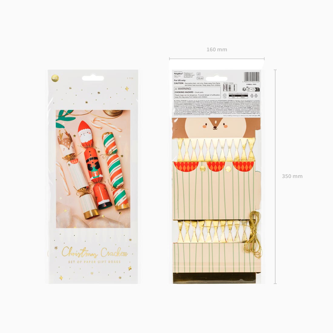 Piccole scatole regalo a forma di caramello realizzate in carta con miscela di colori e stampe di Natale.