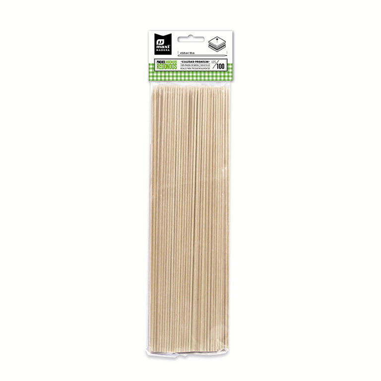 Pinchos higiénicos de abedul redondos de Ø 0,25 cm de diámetro x 30 cm de largo.