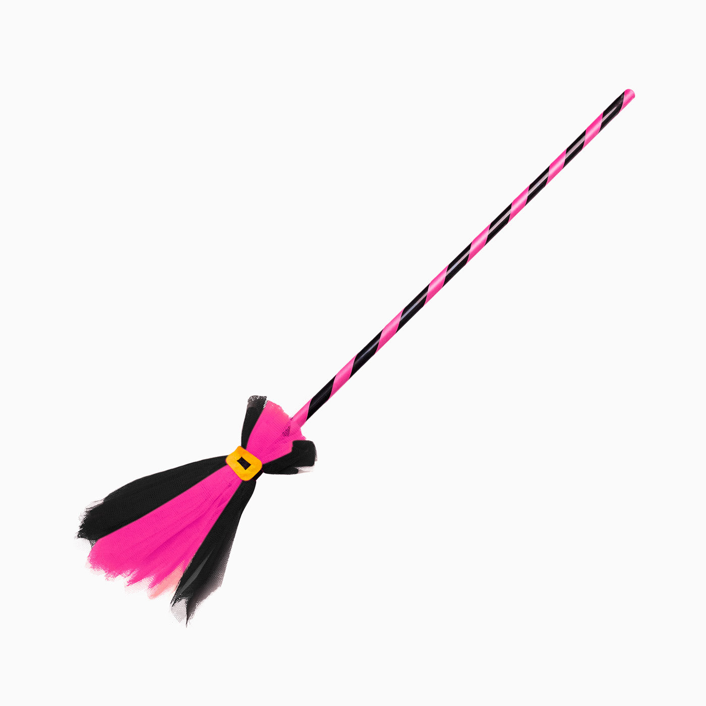 Quer se destacar com sua fantasia? Esta divertida vassoura em preto e rosa é a opção perfeita devido ao seu design particular.