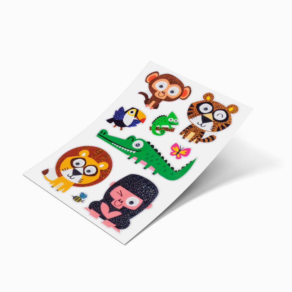 Os adesivos são um produto adorável e charmoso para quem busca uma atividade divertida e criativa. Esses adesivos apresentam diferentes designs coloridos com olhos arregalados e detalhados de animais de safári, permitindo que as crianças criem suas próprias histórias e cenários imaginários.
