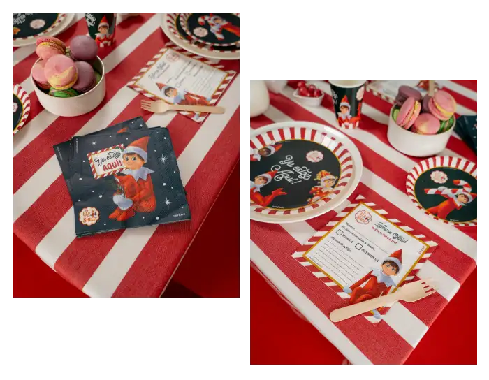 La colección combina diseños elegantes y divertidos, con la figura del Elfo Travieso y su mensaje característico “¡Ya estoy aquí!”, integrándose de forma natural en la decoración navideña de tu hogar. Cada plato, vaso, servilleta y bolsa está pensado para facilitar la preparación de mesas festivas, al mismo tiempo que ofrece oportunidades para pequeñas sorpresas y dinámicas lúdicas que harán que toda la familia cree recuerdos inolvidables.