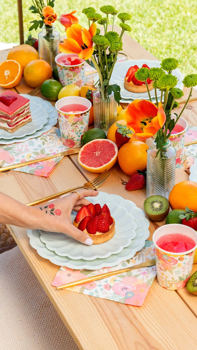 Plato Cartón Llano Postre Forma Flor Ø 18 cm Verde Menta