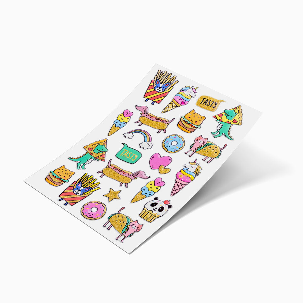 Packung mit 22 mehrfarbigen Aufklebern mit Einhornzeichnungen.