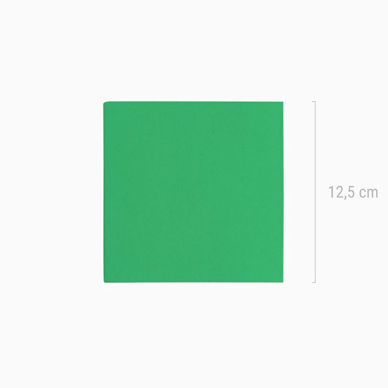 Packung mit 50 Papierservietten doppelschichtig durchgehend 25 x 25 cm grüne Farbe.