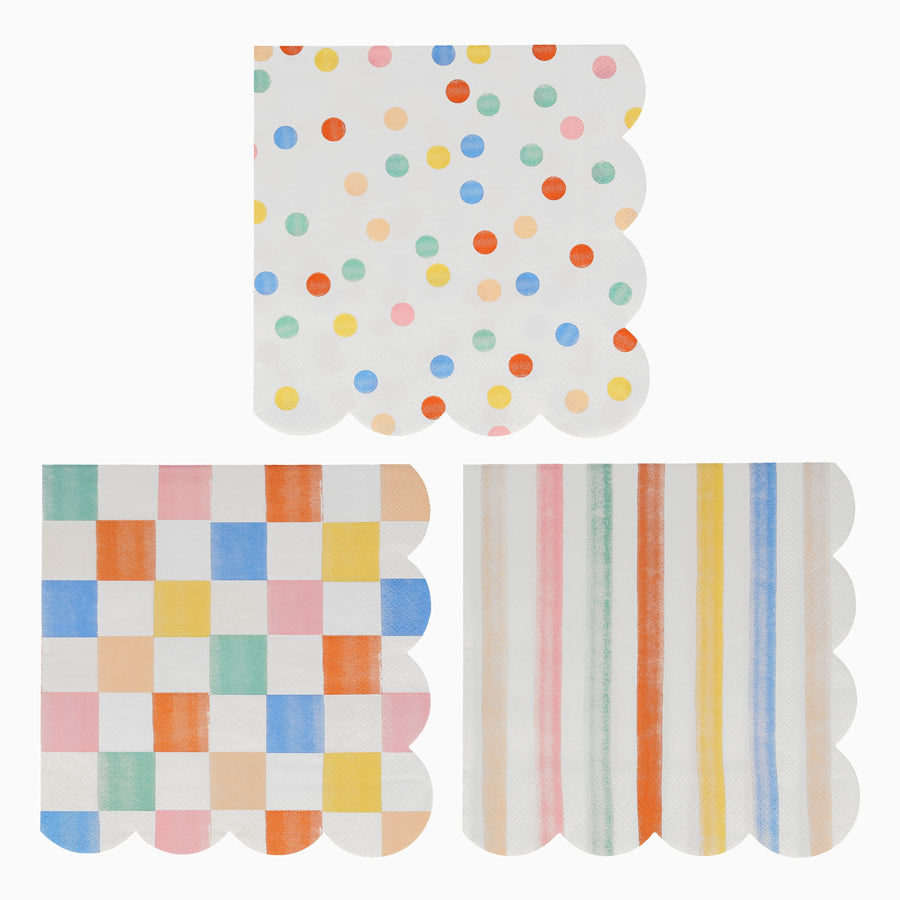 Punkte, Streifen und Karos liegen im Trend. Unsere Premium-Servietten verfügen über diese Drucke in einer Farbpalette mit abgestuftem Pinselstricheffekt für einen kräftigen, modernen Look.