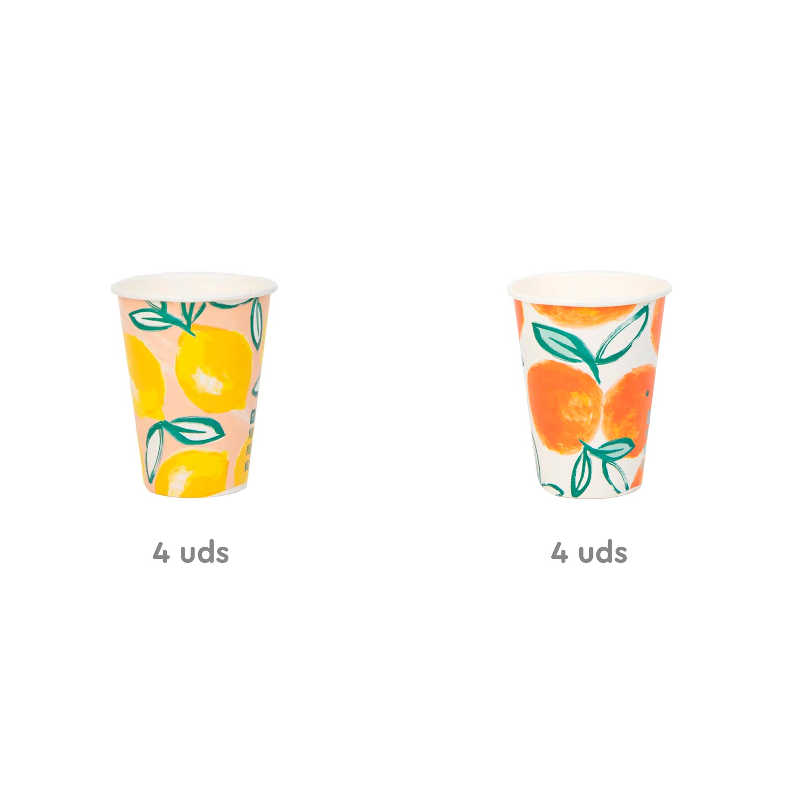Jedes Glas hat ein Fassungsvermögen von 340 ml und die Packung enthält insgesamt 8 Gläser: 4 mit Zitronen-Design und 4 mit Orange-Design.