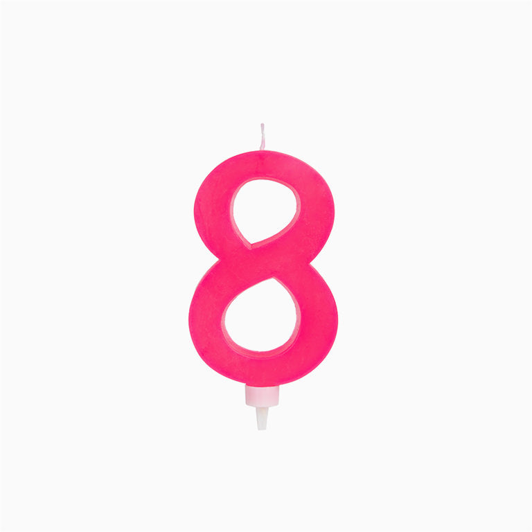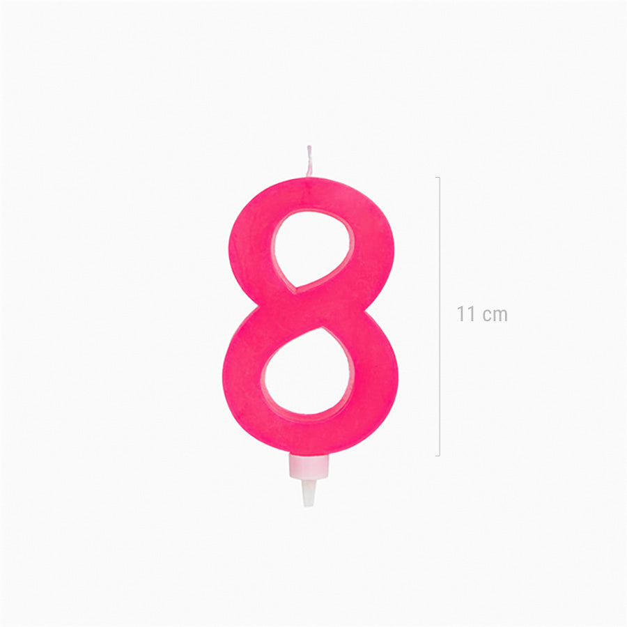 Enthält 1 Einheit große Kerze in Zahlenform mit einem eleganten Metallic-Rosa-Design, das Ihren Feierlichkeiten eine besondere Note verleiht.