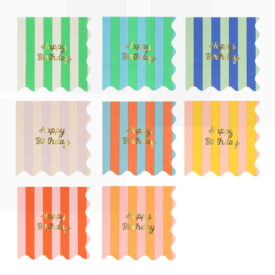 Paper Napkins "Happy Birthday" 25 x 25 cm Stripes Assorted ColorsPaper Napkins "Happy Birthday" 25 x 25 cm Stripes Assorted Colors