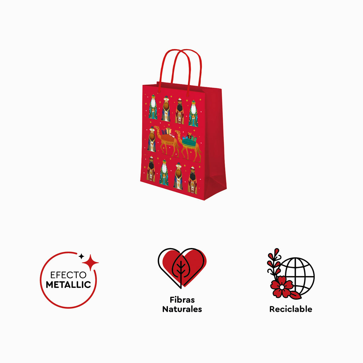 Small Gift Bag measuring 18 x 10 x 24 cm in red with a Three Wise Men theme. A small gift bag is decorative packaging designed to hold smaller gifts.