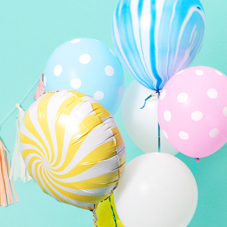 Pack of 8 100% biodegradable latex balloons with decorated 30 cm white moles. Ideal to create decoration arches, combining several designs, sizes and colors. They are suitable for air or helium fan. It is advisable to use inflator.