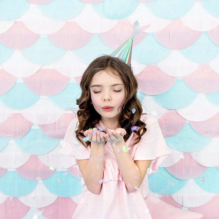 The decoration also takes an important part at the party transforming space into a delighted world under the sea. The curtains in pink, blue or iridescent tones will create a magical entry by adding bright and fluorescent elements to imitate the luminescence of the marine depths and the piñata will bring the little ones closer in the search for the underwater treasure.