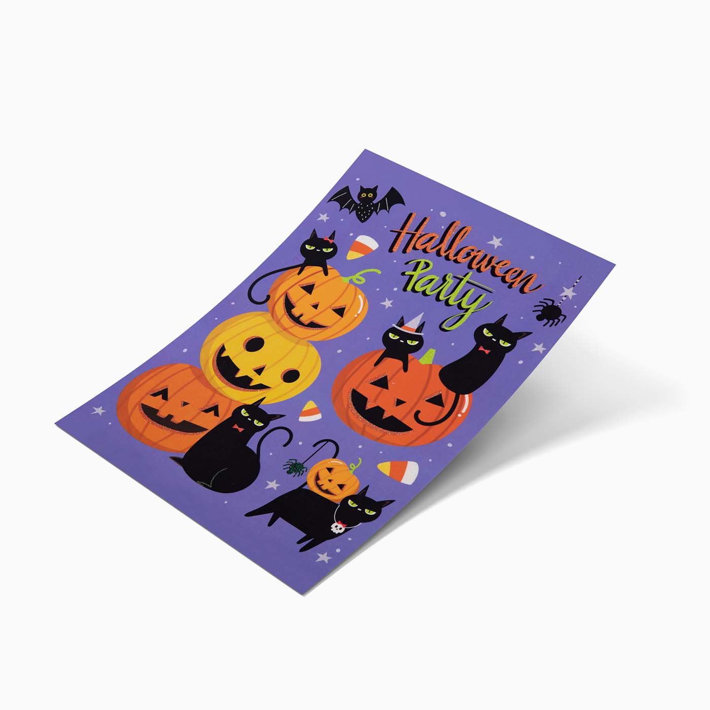 Sticker leaf for pumpkins and cat window with glitter finish and Halloween theme.Surely the little ones in the house want to be participants in the decoration process and a good example is this Halloween adhesive leaf, which is intended to be located on the windows of your home to your children's taste. Prepare to spend a really chilling Halloween night?Combine with the rest of the elements of the "trick or treatment" collection and create a terrifyingly fun decoration!