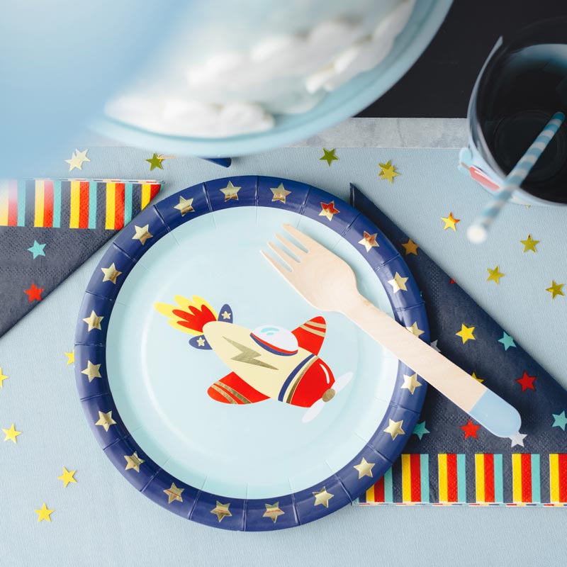 Ready to take off on an aerial adventure? ✈️If your little one marvels every time a plane flies through the sky, this party collection is yours!Many children look up to the sky with bright eyes when they hear the roar of an airplane, dreaming of heights and distant horizons. Airplanes are not just flying machines; They are symbols of high hopes, exciting adventures and endless fun.Make your little one the captain of their own air destination with our special collection. Decorate with balloons that emulate airplanes and clouds, themed tableware or posters that recreate the excitement of airports, every detail is designed to elevate the imagination and take the celebration to new heights.Prepare your wings of fun, it's time to fly high at this party! 🎉🛫