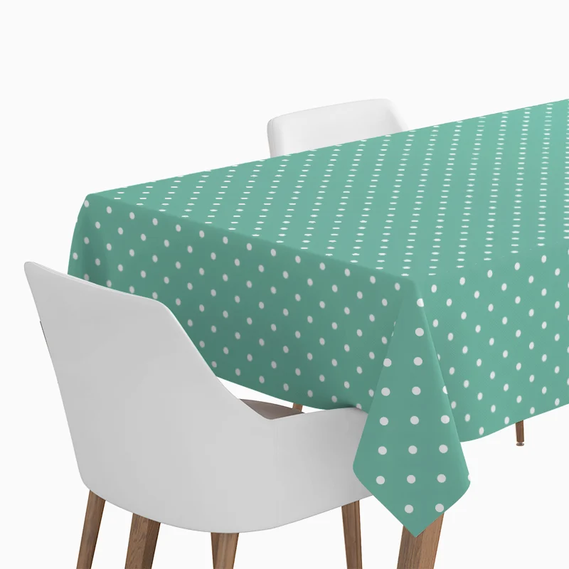 Basic Tablecloth Roll with blue polka dots measuring 1.20 m wide and 5 m long.