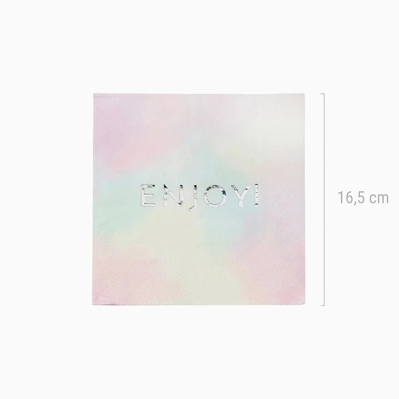 Past paper napkin with message "Enjoy!" Ideal to celebrate your children's birthdays, snacks, baby shower or thematic parties full of magic. Combine with the rest of the elements of the "Enjoy!" Collection collection To complete your parties!