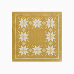 Pack of 30 gold metallic paper napkins 25x25 cm double layer and white embroidery.