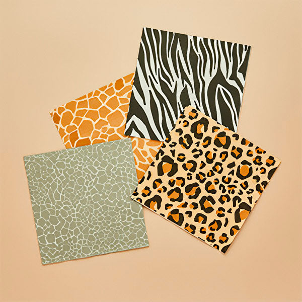 Includes 16 napkins, each with a unique print of animal print. The set presents four different designs, which adds a variety of textures and patterns that will captivate your guests.