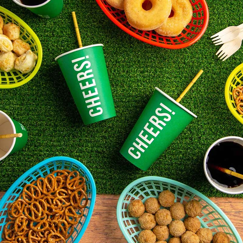 Single-color cardboard cup with the message "Cheers!" ideal for celebrating children's birthdays or theme parties. Combine with the rest of the basic elements to complete your parties!