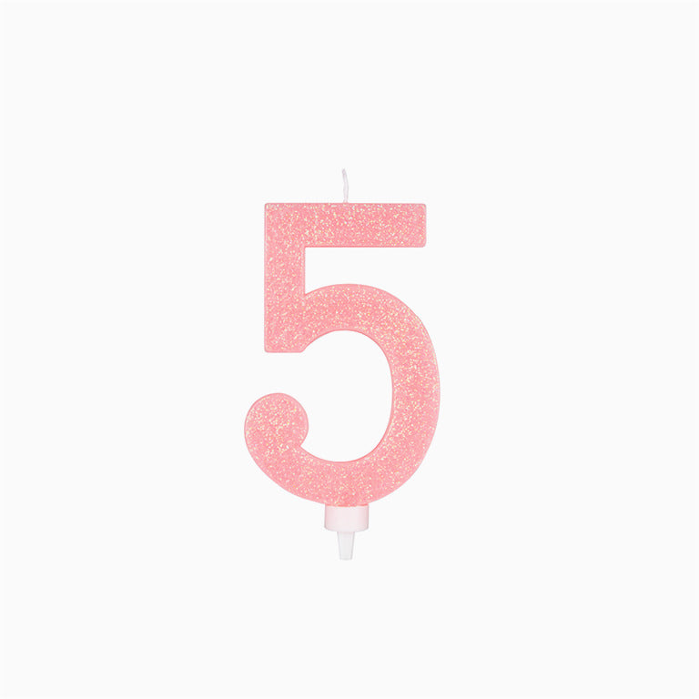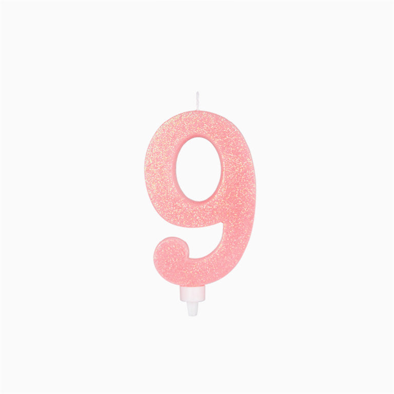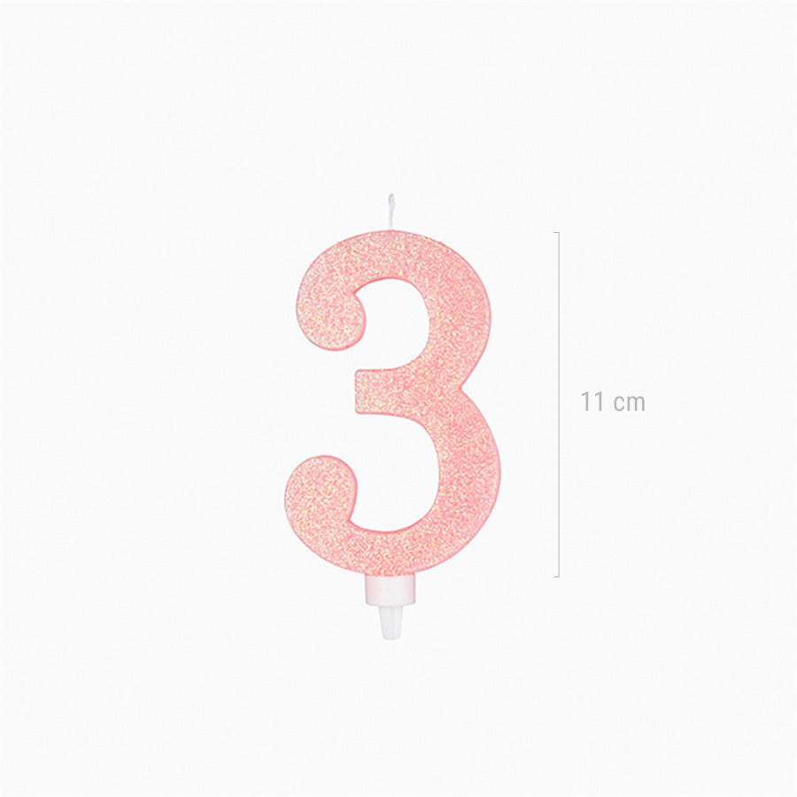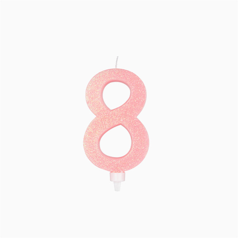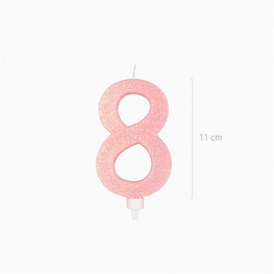 Includes 1 unit of large number-shaped candle, with an elegant pastel pink glitter design that adds a special touch to your celebrations.