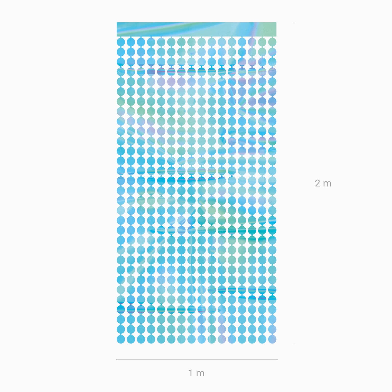 Cortine en forme de 1 x 2 m de couleur bleue et avec une finition irisée.