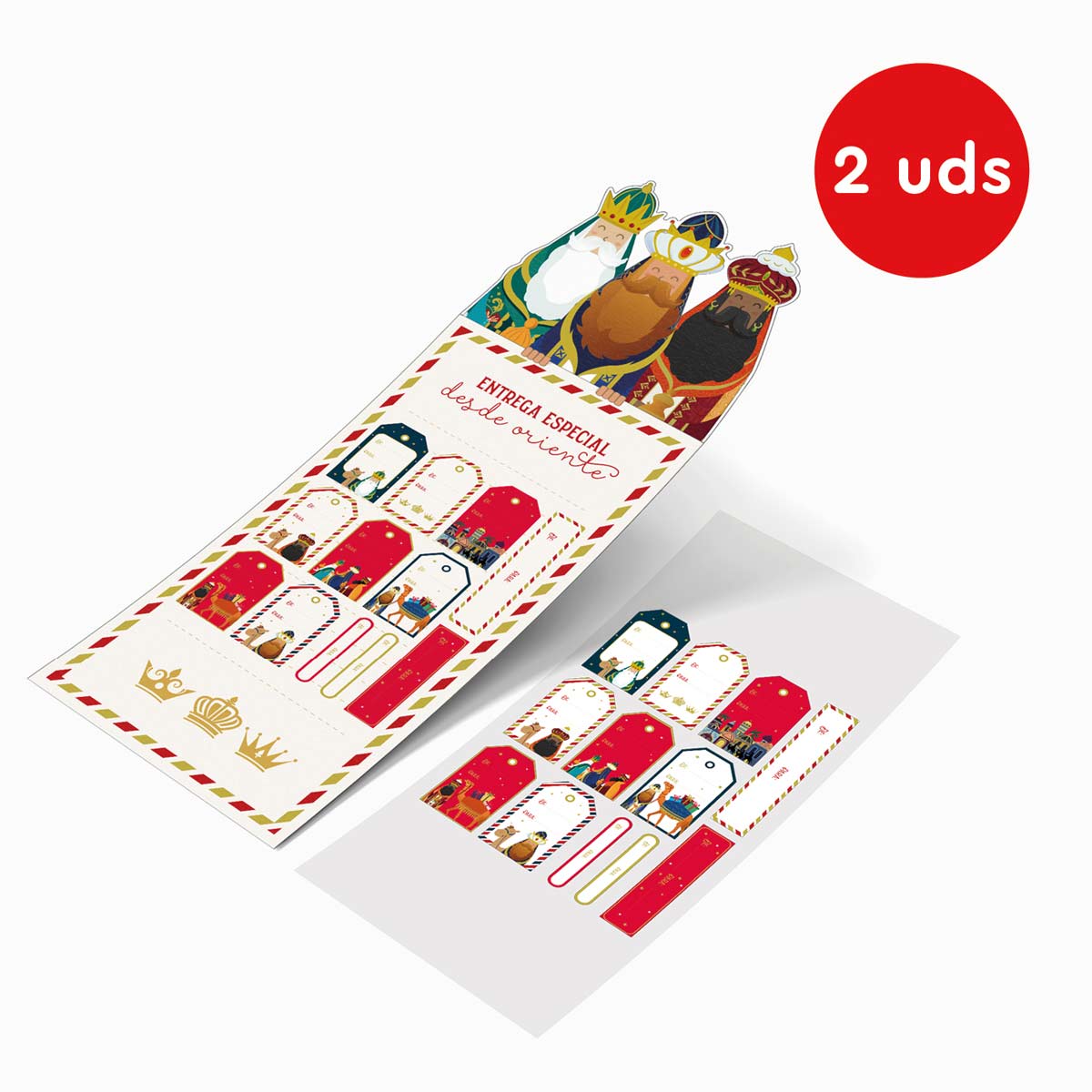 Emportez 2 feuilles d'étiquettes adhésives pour vos cadeaux avec le thème des mages.