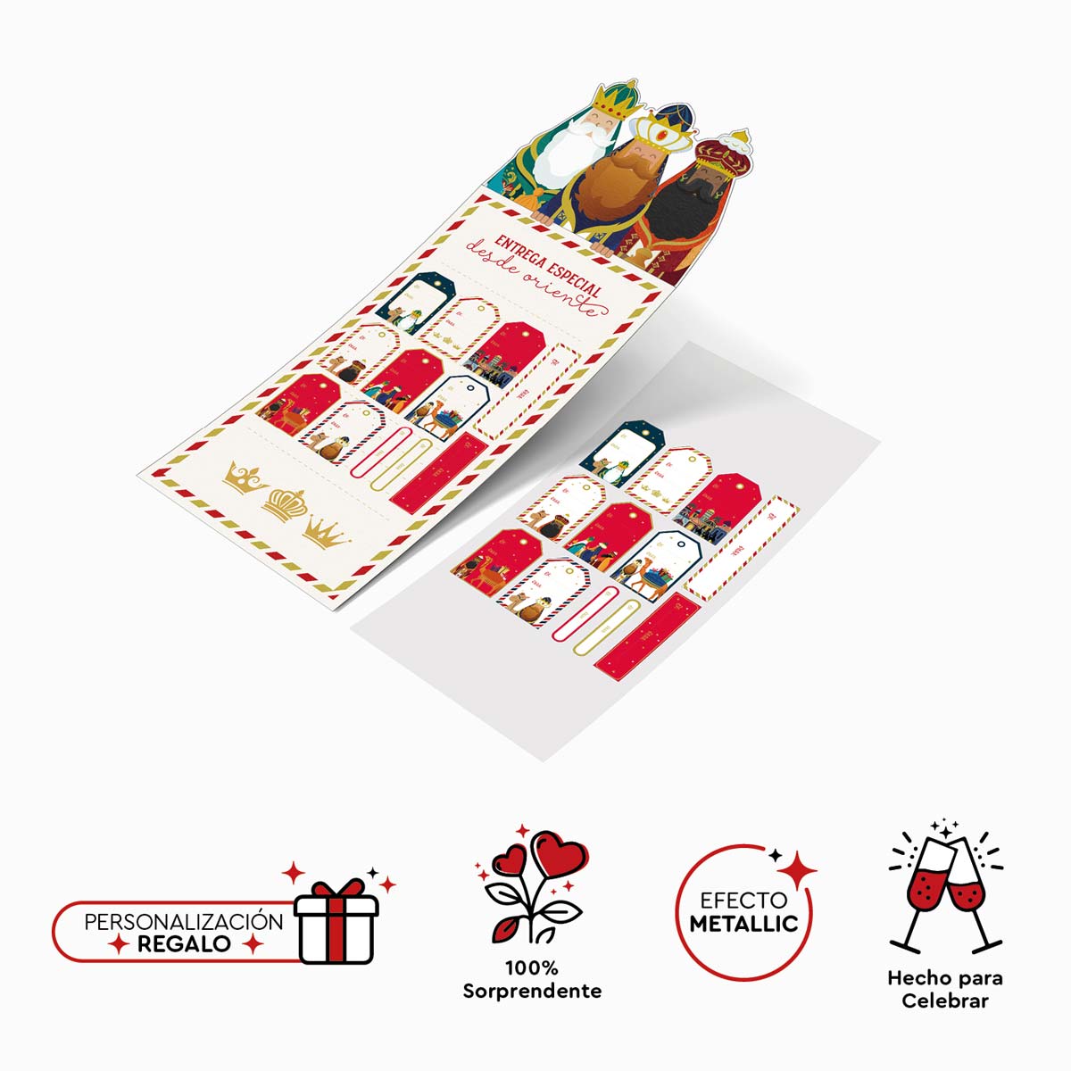 Ces autocollants spécifiques ont divers conceptions d'étiquettes personnalisables avec des détails métalliques à ajouter à vos cadeaux. De plus, ils incluent une lettre afin que les petits puissent le livrer aux mages.
