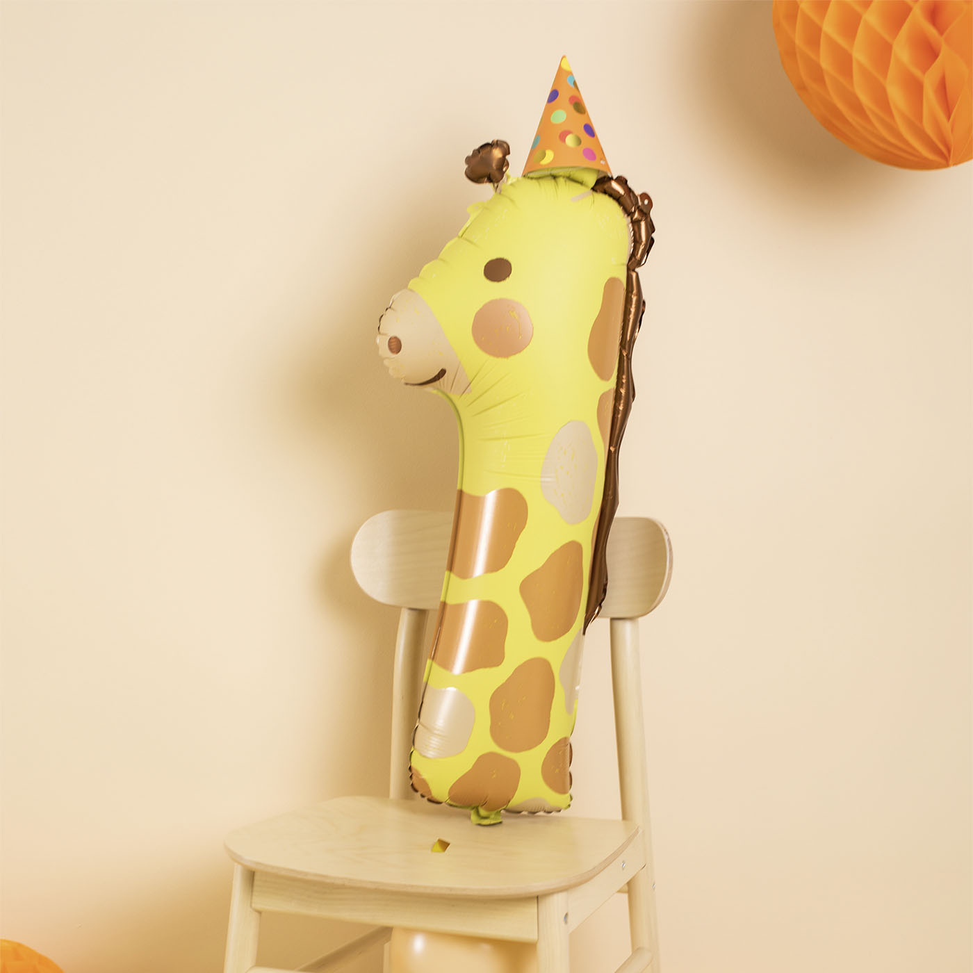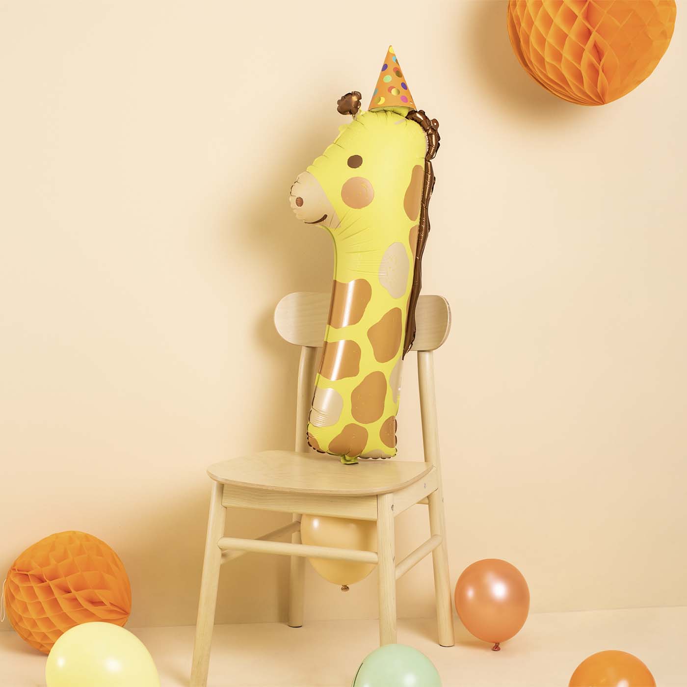 Globe numéro 1 de feuille multicolore avec une forme en forme de girafe pour décorer lors d'une fête d'anniversaire ou d'une fête thématique et remplir l'espace de magie. Combinez avec le reste de la collection Animals! Taille avant de gonfler environ. 42 x 90 cm (16,5 x 35 ''), taille après inflation env. 31 x 82 cm (12 x 32 '').