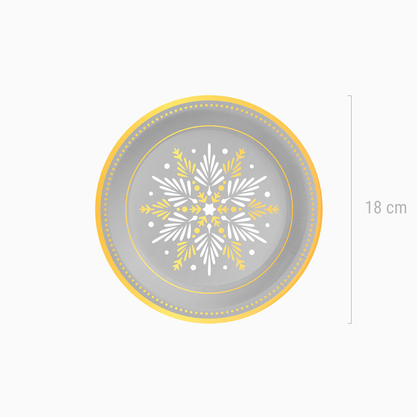 Plato Cartón Llano Navidad Ø 23 cm Copo de Nieve Plata y Dorado