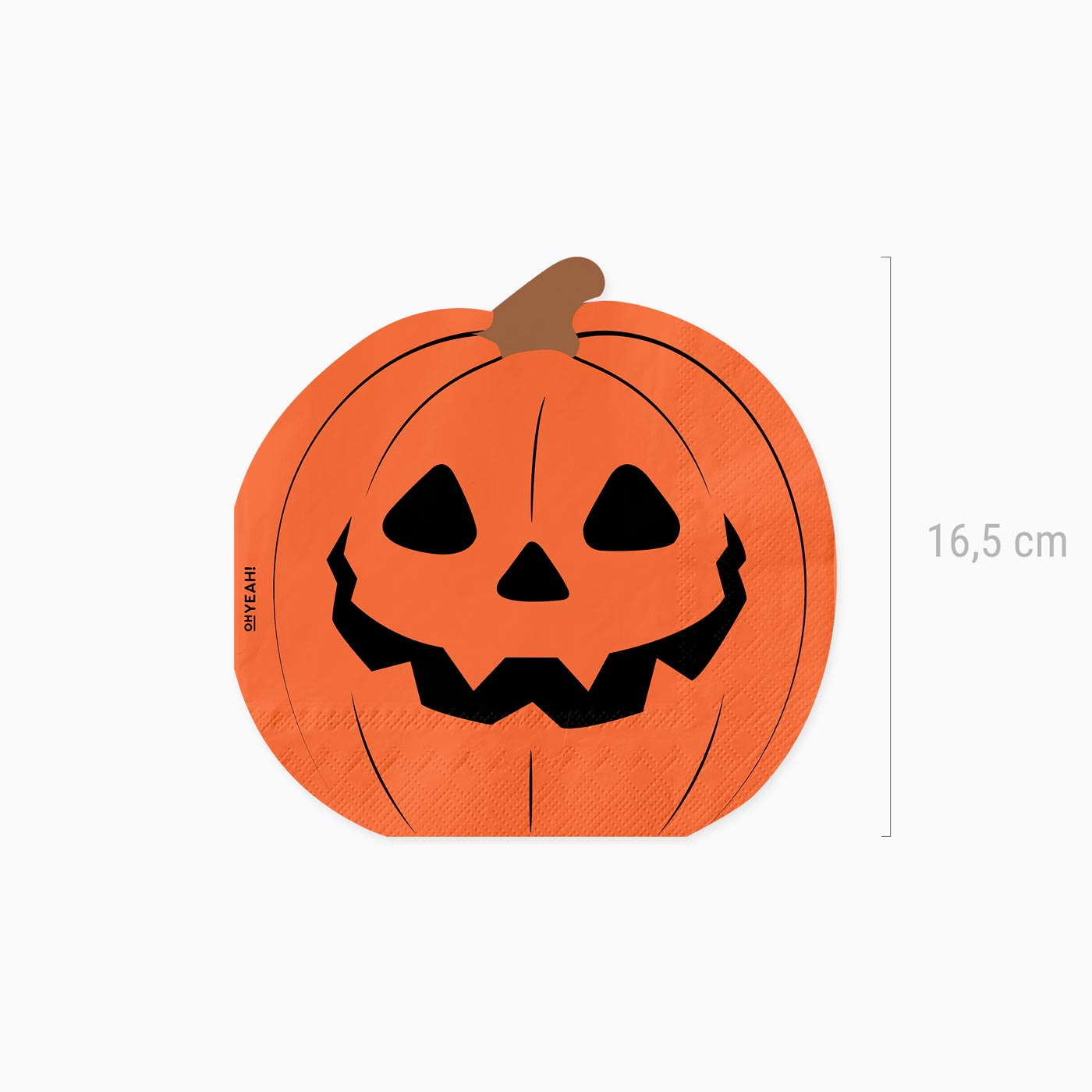 Emballage de 20 serviettes à double couche de 33 x 33 cm en forme de "tour ou traitement" de la citrouille orange. 100% recyclable et de haute qualité.