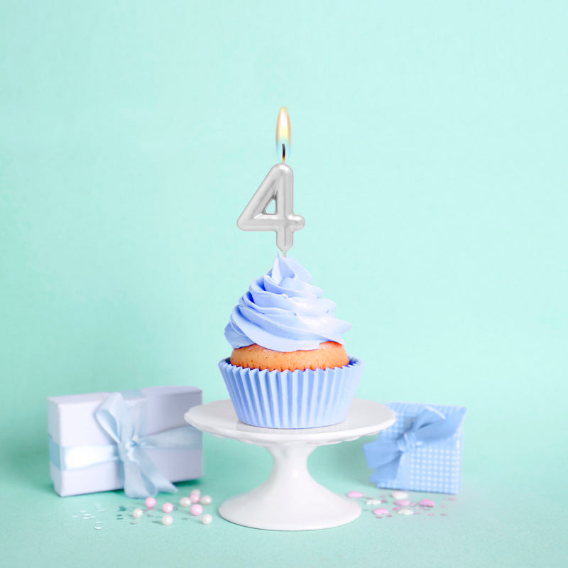 Le pack comprend 1 unité de bougie en forme de chiffre, en argent avec un design élégant pour donner une touche spéciale à vos célébrations. Dimensions : 6 cm de hauteur, comprend le support en plastique blanc pour pouvoir le coller dans le gâteau et éviter tout risque de chute.