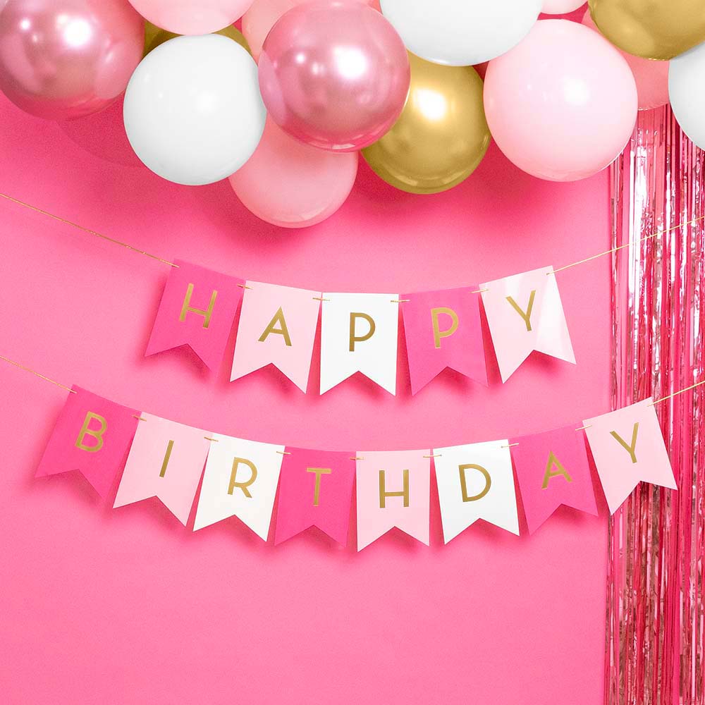 Guirnalda banderines carton 'Happy Birthday' Rosa