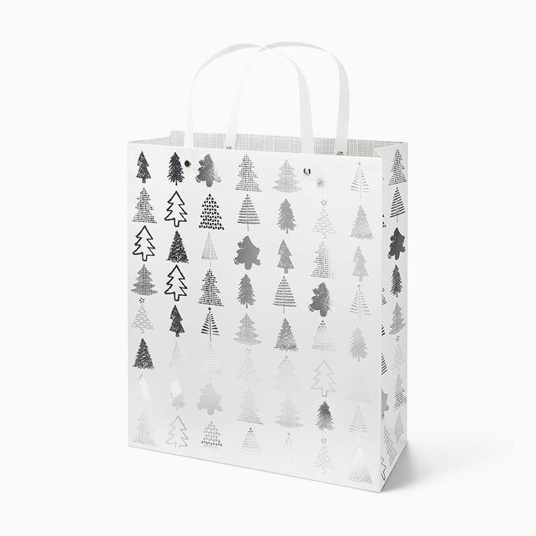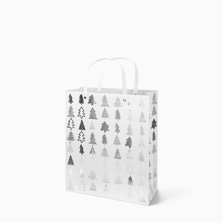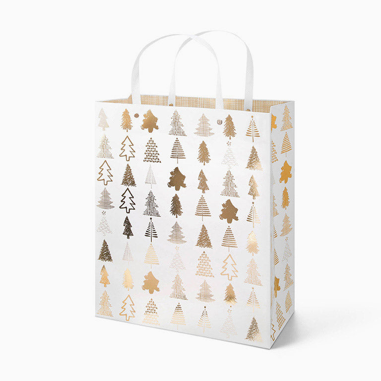 Sacchetto regalo con molti alberi di Natale. Dimentica la carta regalo e mantieni quel dettaglio speciale in questa borsa di Natale ideale. Sono pratici e resistenti, la loro composizione è di cartone con un kraft e una finitura di stampaggio. Inoltre, sono riciclabili al 100% e biodegradabili.