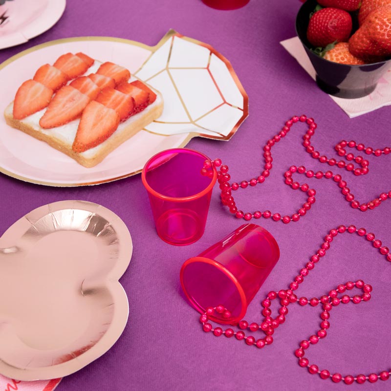 Collana shot da 50 cc in plastica riutilizzabile di colore rosa.