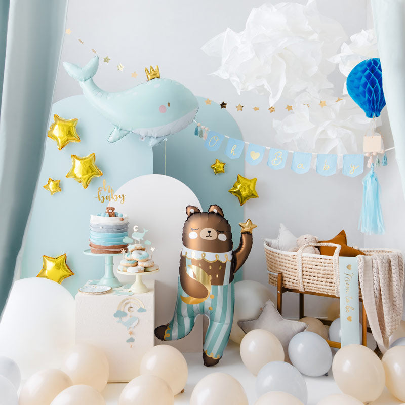 Palloncino in lamina a forma di tipo Balena in blu cielo, Ideale per decorare celebrazioni come primo compleanno, baby shower o feste a tema piene di magia. Combina con il resto degli elementi animali per completare le tue feste!