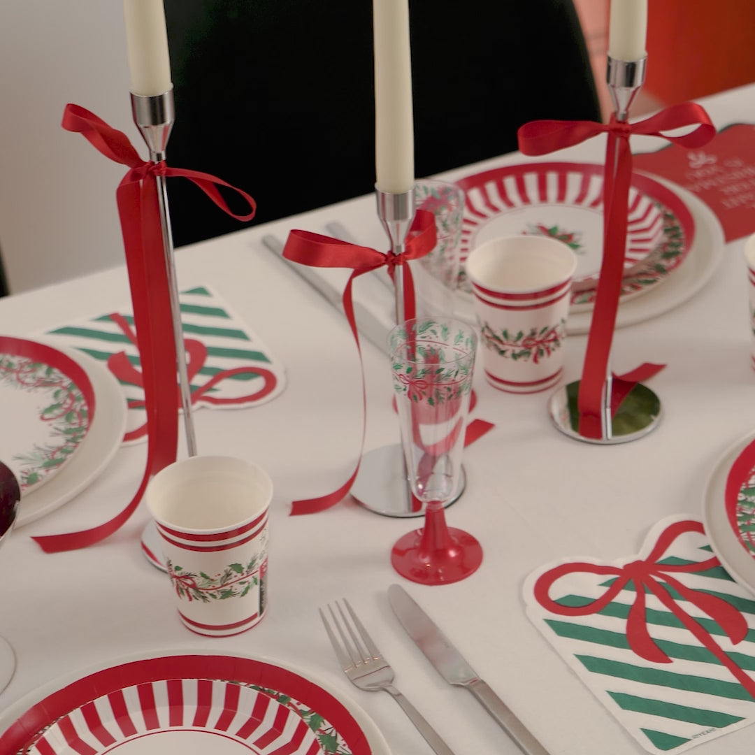 Haz que tus regalos sean tan especiales como la ocasión, con estas bolsas para regalo estampadas de la colección "All I Want". Este kit de 3 bolsas de 30 x 10 x 42 cm incluye 3 diseños surtidos, con los estampados de la colección “All I Want" (acebo con toques rojos, rayas blancas y rojas o verde intenso con frase al centro), garantizando una presentación original.
