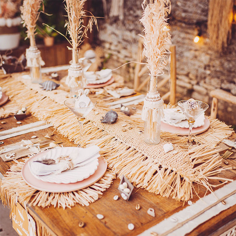 Camino de mesa de rafia ideal para decorar la mesa de cumpleaños infantile o las o fiestas temáticas. Combina con el resto de elementos para completar tus fiestas!