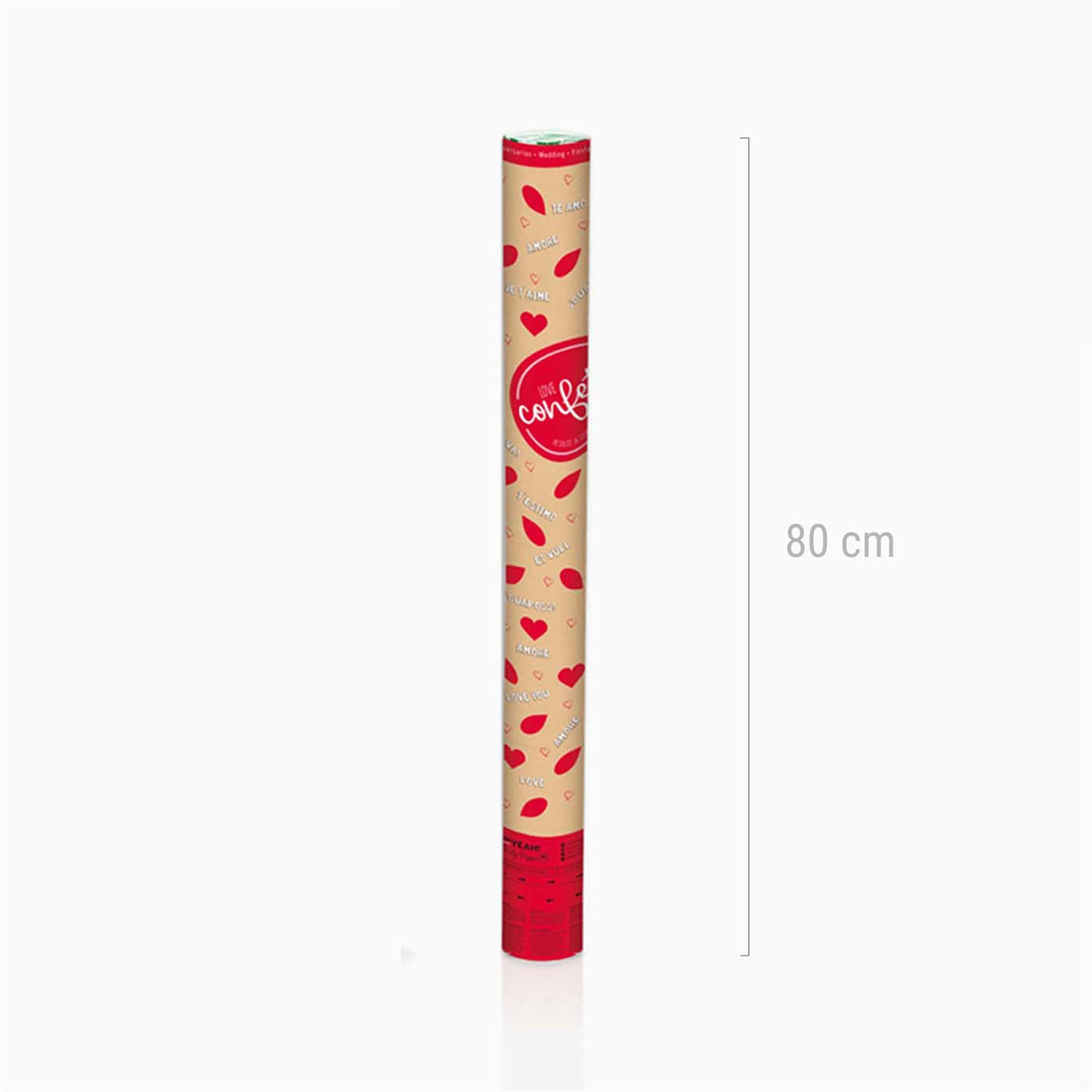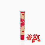 Cañón de confeti de 80 cm de largo con aire comprimido que al girar la base lanza confetti en forma de pétalos de tela y corazones de papel.❤️
