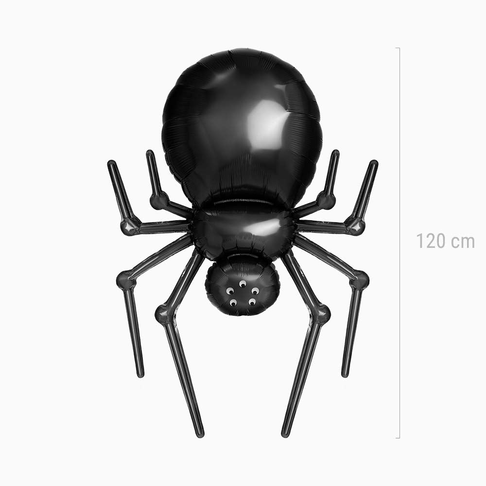 Una unidad de globo foil con forma de araña de 120 cm color negro con temática "Halloween".