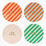 Haz que tus invitados luzcan sensacionales con nuestro pack de 8 divertidos gorros de fiesta a rayas.