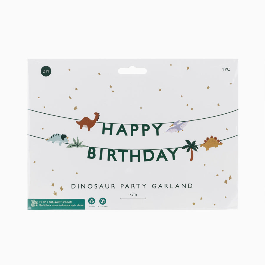 Guirnalda Dino con inscripción ''Happy Birthday'' de papel.