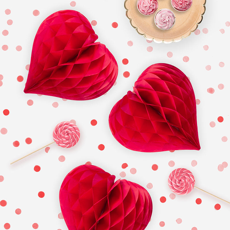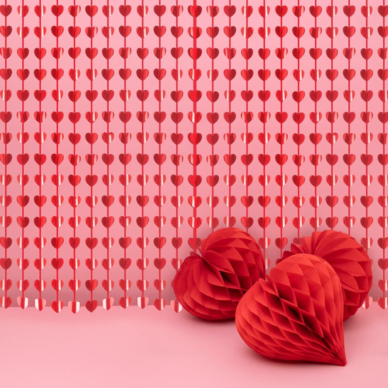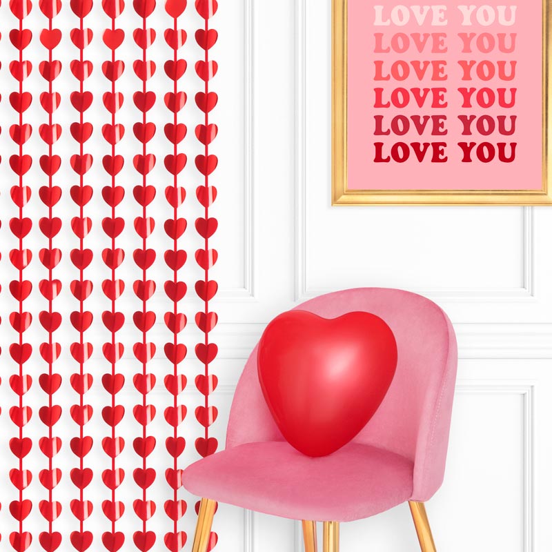 Kit Deco San Valentín en color rojo, compuesto por un total de 9 piezas.